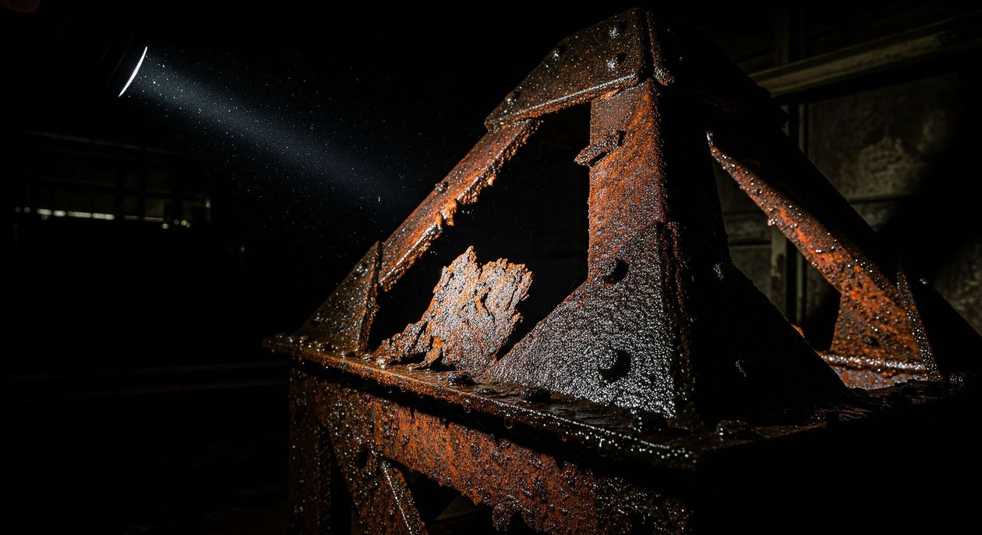 ボルトの隙間などから内部に浸入したわずかな水が、毛細管現象によってタイトフレーム周辺に吸い寄せられ、滞留します。さらに工場の稼働による熱で発生した結露水なども加わり、タイトフレーム周辺は常に湿った状態になりがちです。これが、じわじわと構造躯体の錆・腐食を進行させていきます。