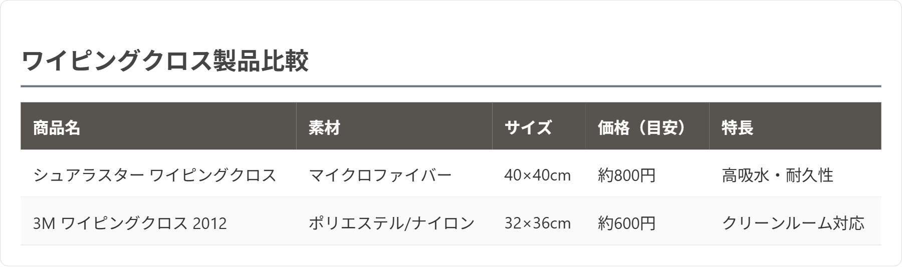 市販のワイピングクロスには、吸水性や繊維の細かさ、耐久性などで各社工夫があります。マイクロファイバー製や3M製品など、プロも愛用するアイテムが増えています。使い捨てタイプと耐洗濯タイプがあり、用途やコストパフォーマンスで選ぶと良いでしょう。