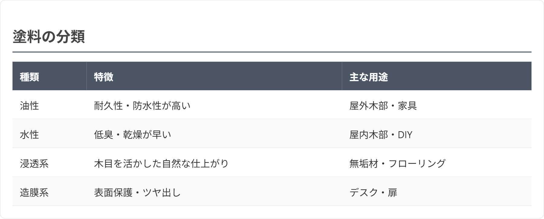 ■塗料・ワイピング材の種類比較と適材適所の選び方