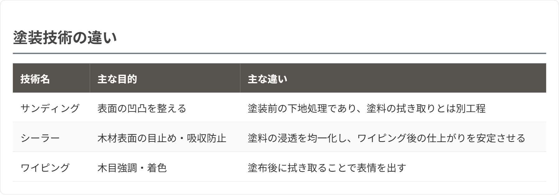 関連技術(サンディング・シーラーなど)との違い