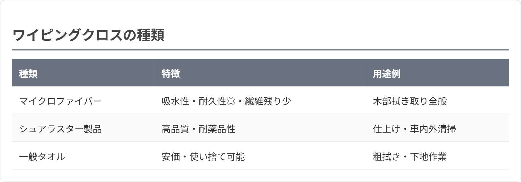 道具選び(クロスやタオル等)と使い方のポイント